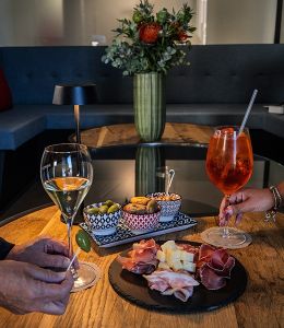 Rilassati con un aperitivo sfizioso, gustando stuzzichini preparati dalla nostra cucina, accompagnati da uno spritz, un calice di fresche bollicine, un bicchiere di vino o un aperitivo analcolico. La terrazza è anche il luogo ideale anche per concludere una serata, sorseggiando un distillato, un liquore o una rilassante tisana.
